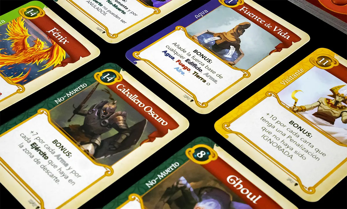 - Un mazo de objetos malditos que alteran las reglas y orden de juego.