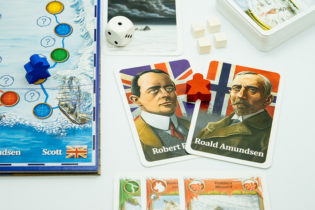 1911 AMUNDSEN VS SCOTT te presenta la mítica gesta de los mejores exploradores antárticos. ¡Este rápido y asimétrico juego para 2 jugadores, fácil de aprender y lleno de detalles históricos, captura toda la emoción y aventura de la épica carrera al Polo Sur!