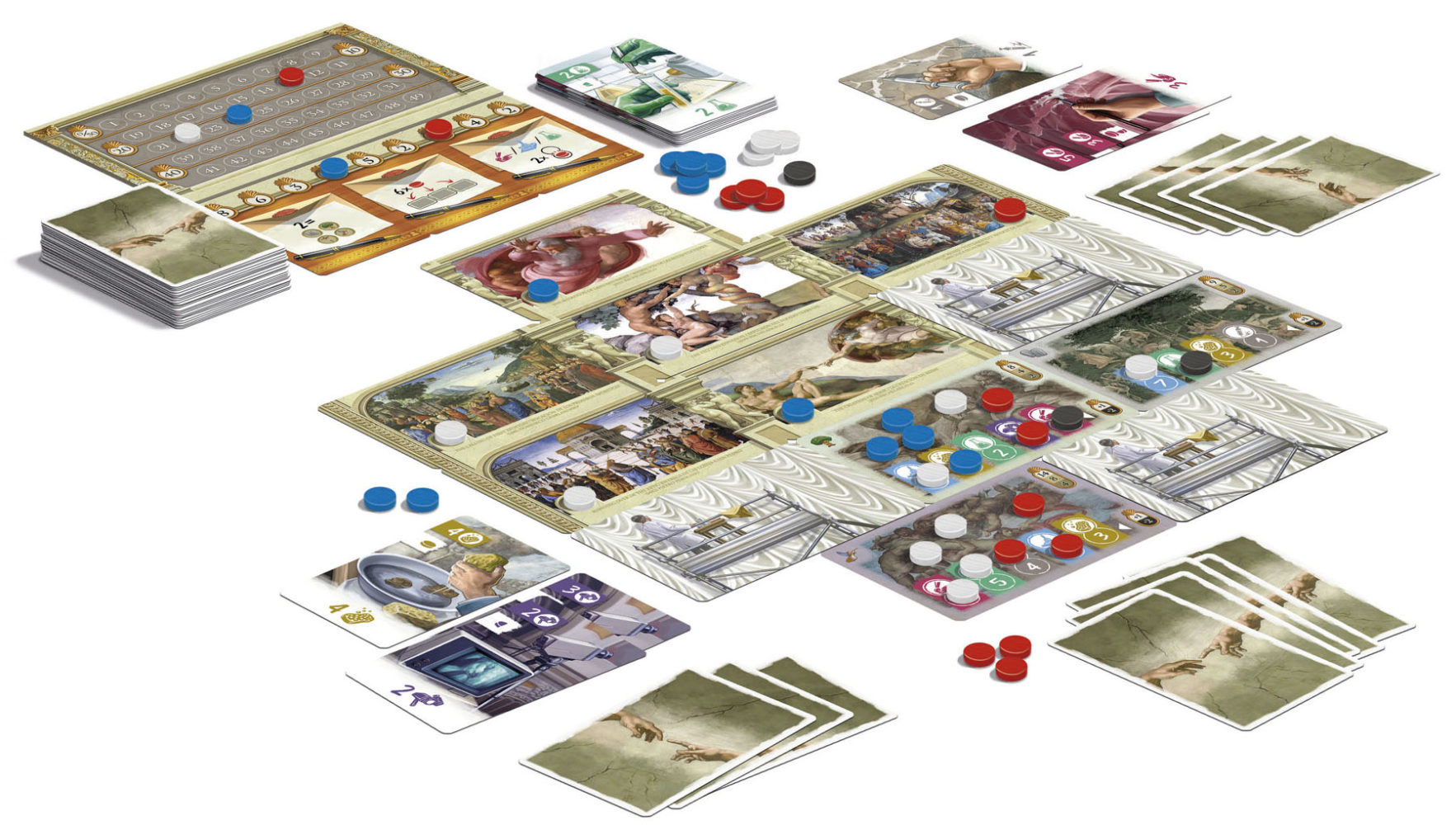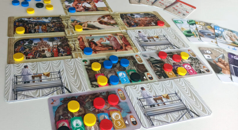 Compite como restaurador en este evento monumental y utiliza todas las técnicas disponibles para que los frescos de Miguel Ángel, Botticelli, Perugino, Ghirlandaio y Rosselli recobren su brillo y esplendor mientras la Capilla Sixtina se desvela sobre tu mesa. ¡Preparaos para adentraros en un desafío donde el arte y la historia se entrelazan en cada pincelada!