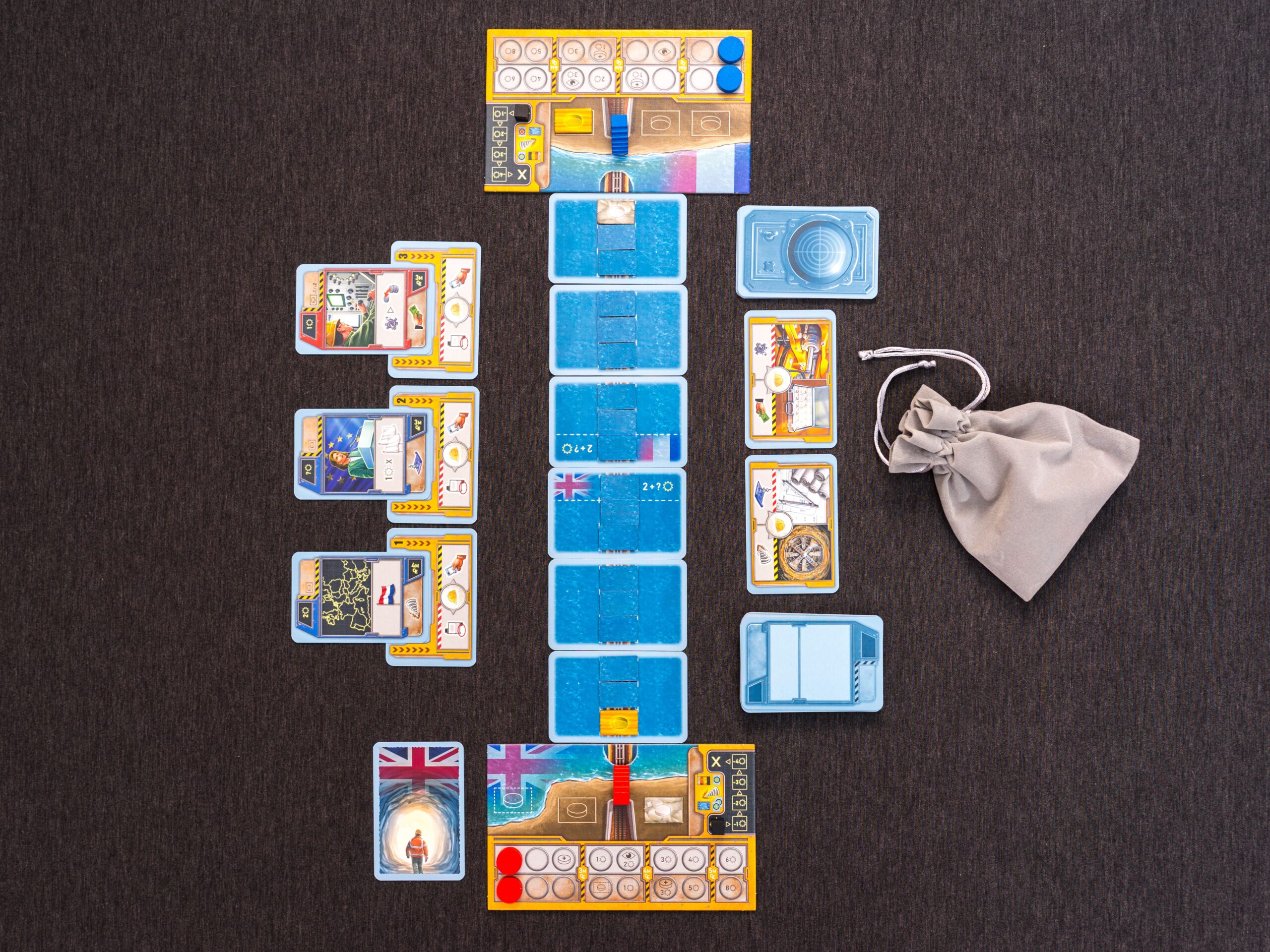 ¡Ponte al mando de un equipo de constructoras de Gran Bretaña o Francia para unir los dos países bajo el mar! En este juego competitivo de 2 jugadores diseñado por Sheila Santos e Israel Cendrero, deberás dirigir a tu equipo de trabajadores, desarrollar tecnología y buscar financiación para lograr llevar la tuneladora al punto de encuentro en esta épica gesta para la ingeniería.
